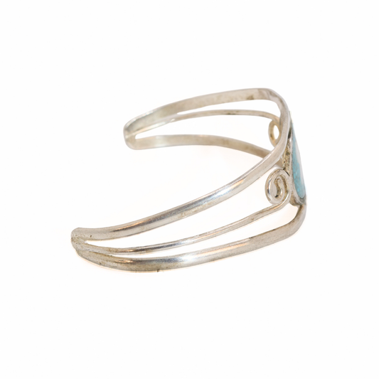 Vintage Turquoise Mosaic Flower Sterling Silver Cuff Bracelet