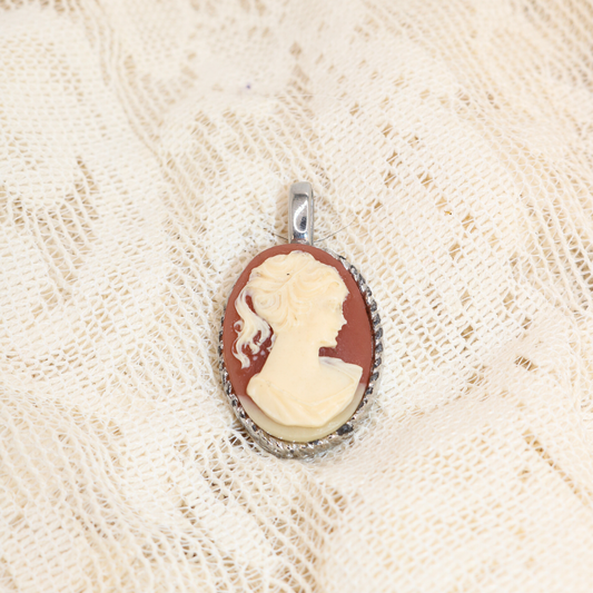 Vintage Estate Pink Cameo Lady Maiden Pendant