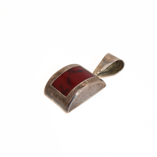 Vintage Mexico Sterling Silver Red Quartz Rectangular Inlay Pendant