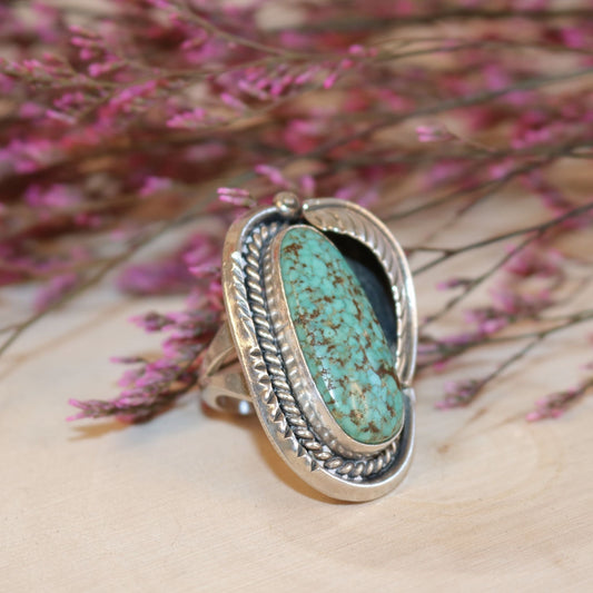 Sterling Silver Navajo-Style Ring with Turquoise Cabochon