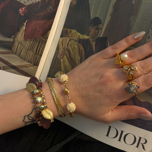 Vintage Gold Filled Bracelet with White Carved Flower Charms