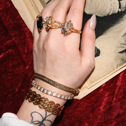 Vintage Pearl and Glitter Bypass Ring