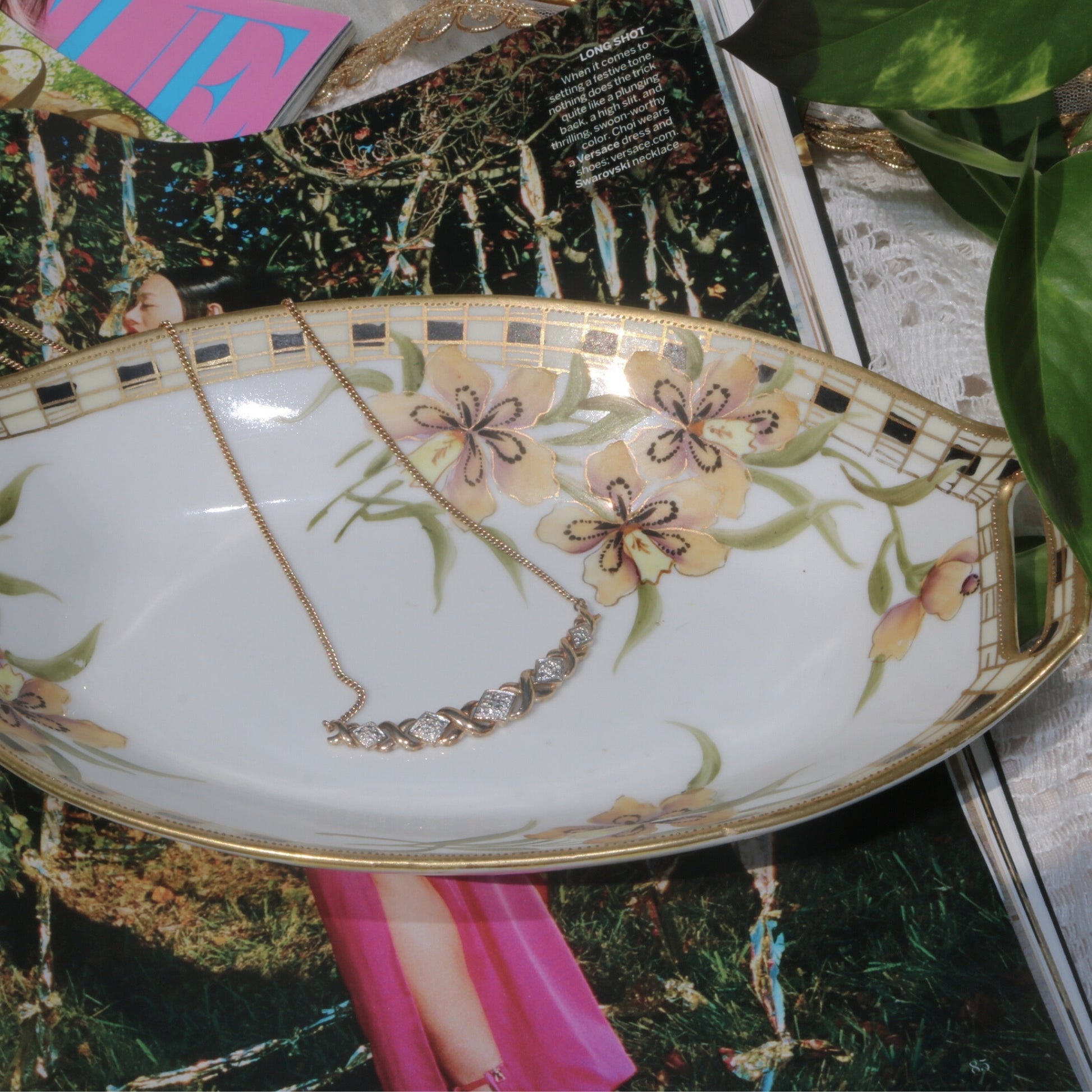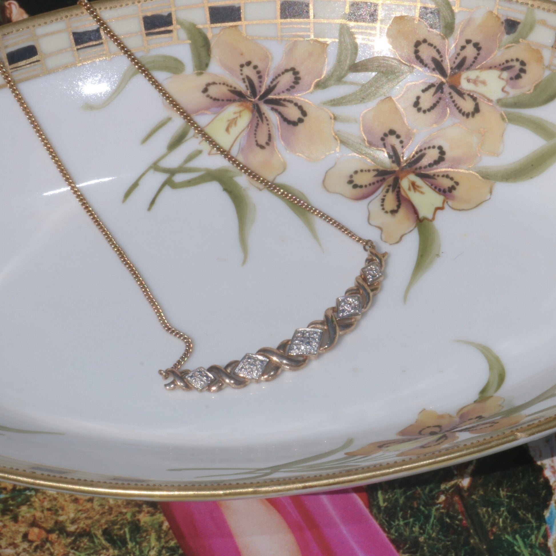 Gold-Plated Sterling Silver Bar Necklace with Diamond Accents (.925)