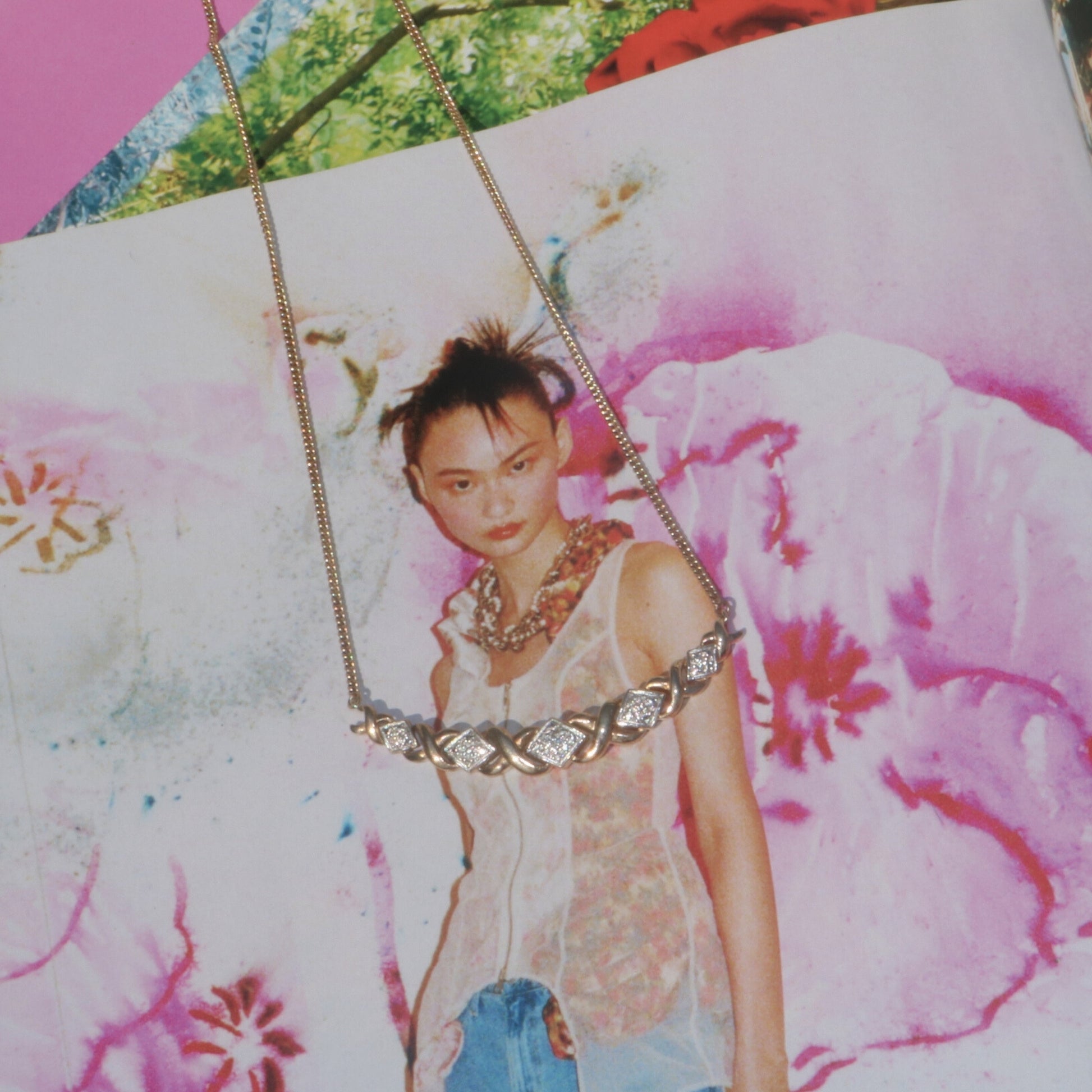 Elegant criss-cross bar design with sparkly diamond-style accents