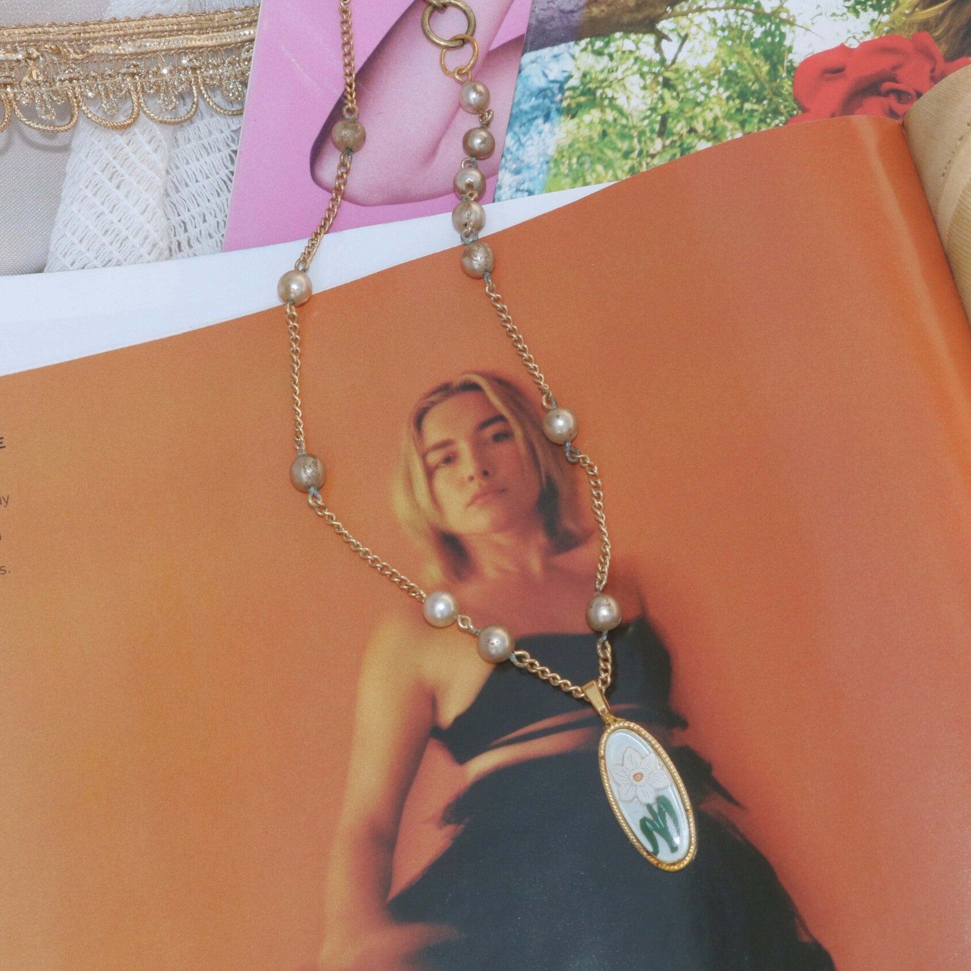Gold-Tone Pearl & Hand-Painted Pendant Necklace