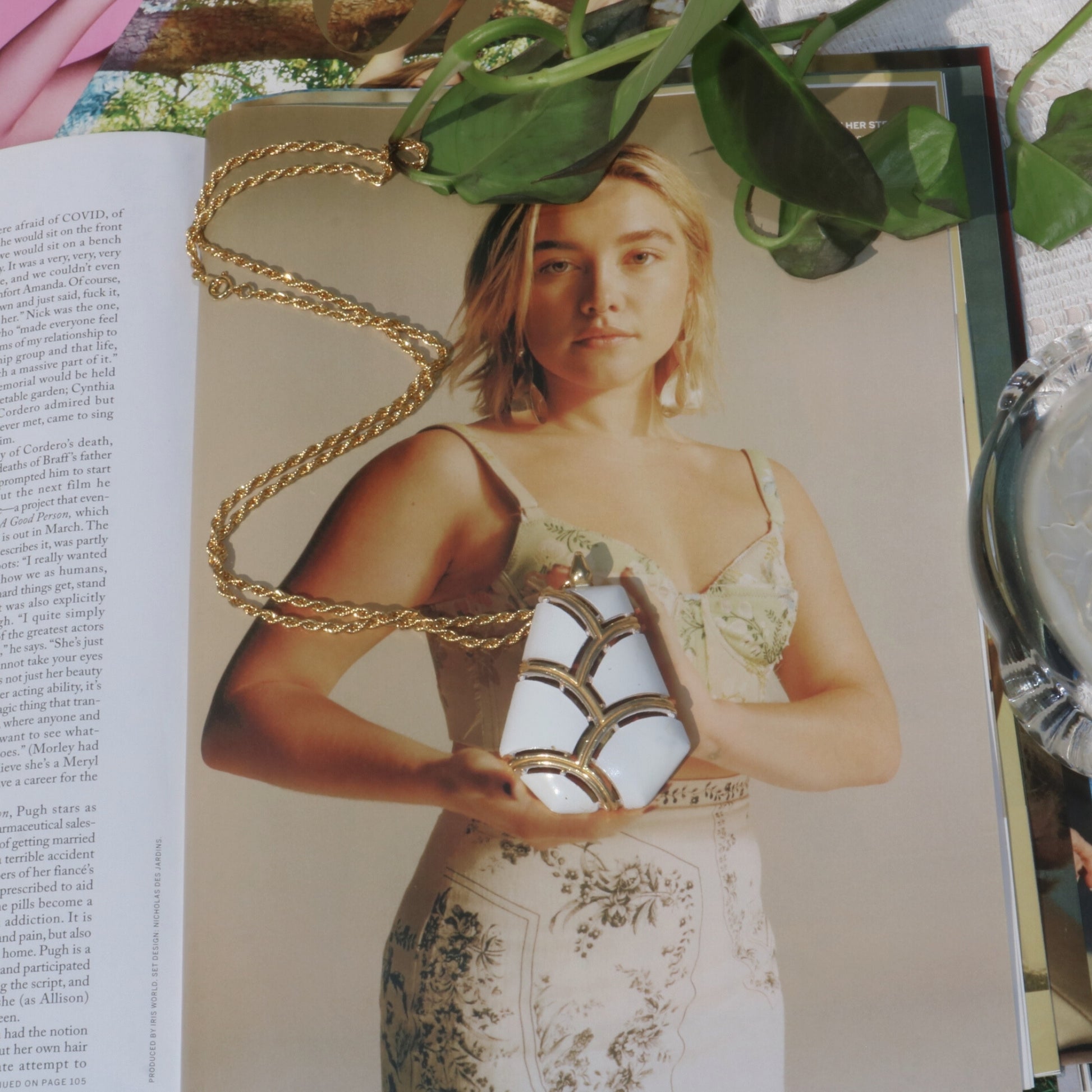 Gold-Tone White Enamel Geometric Pendant Necklace