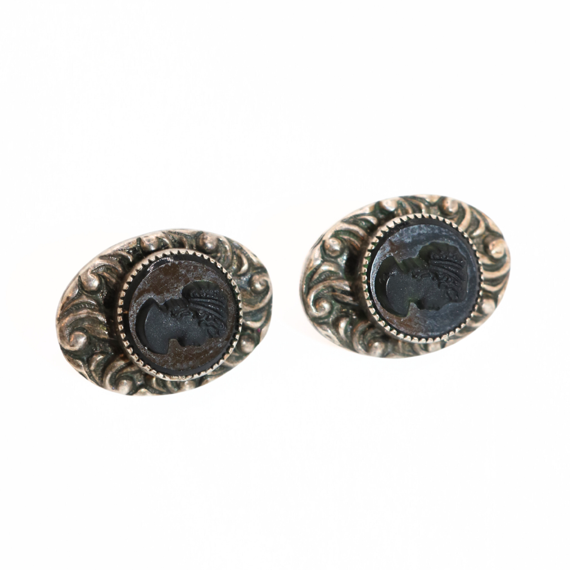 Vintage Black Shell Cameo Earrings