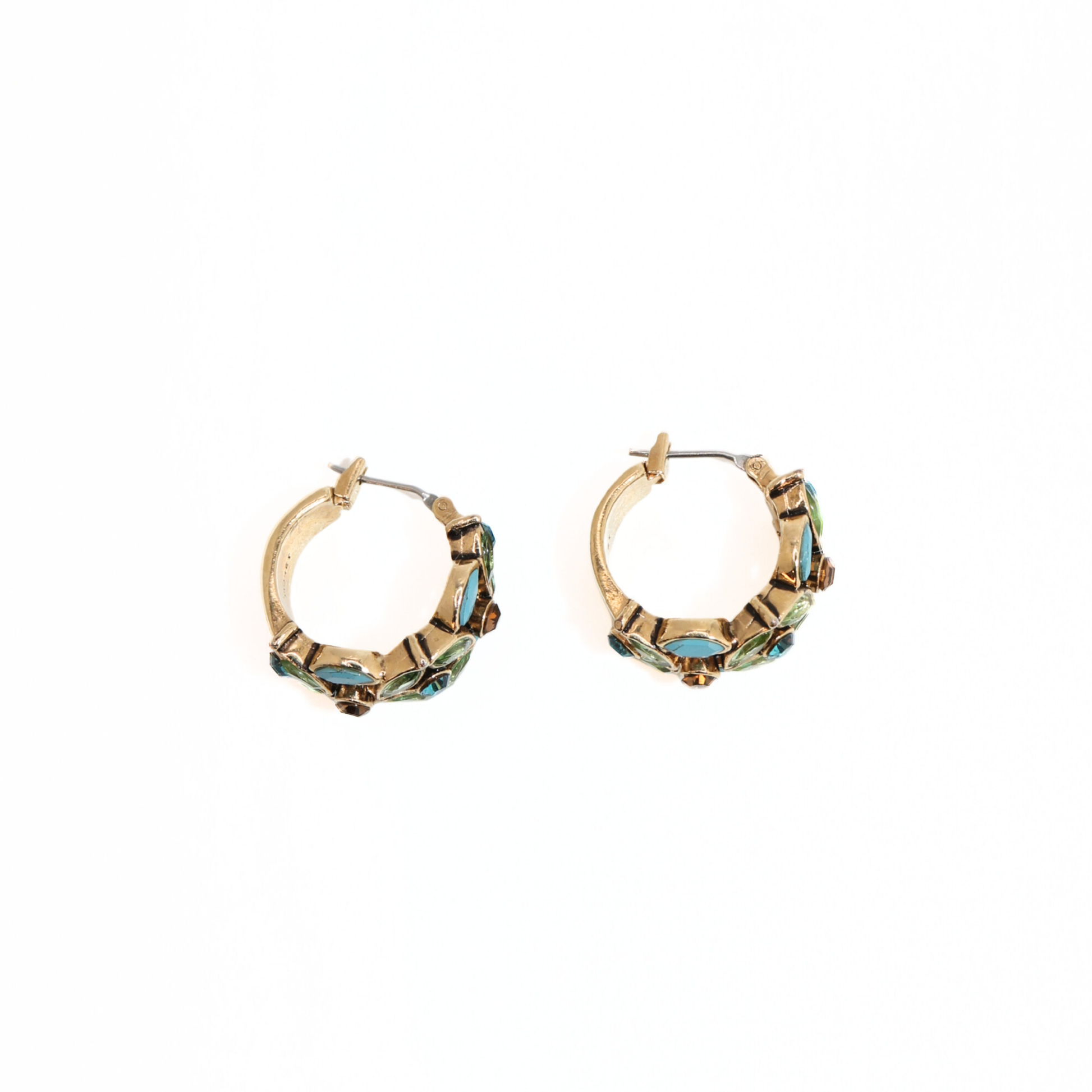 Vintage Monet Blue & Green Rhinestone Hoop Earrings