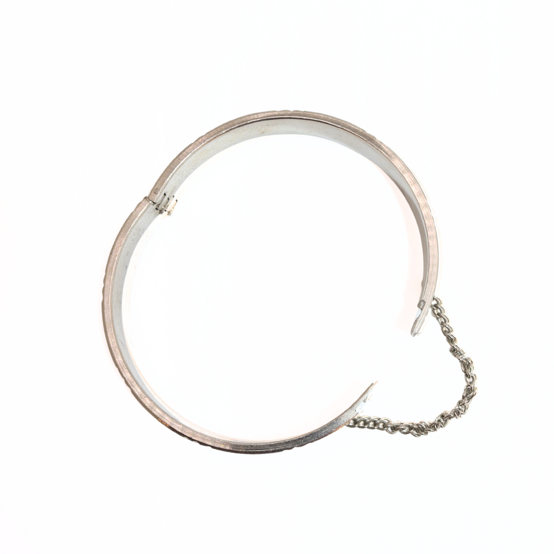 Vintage Silver Tone Starburst Etched Hinged Bangle Bracelet